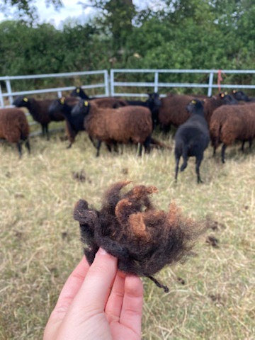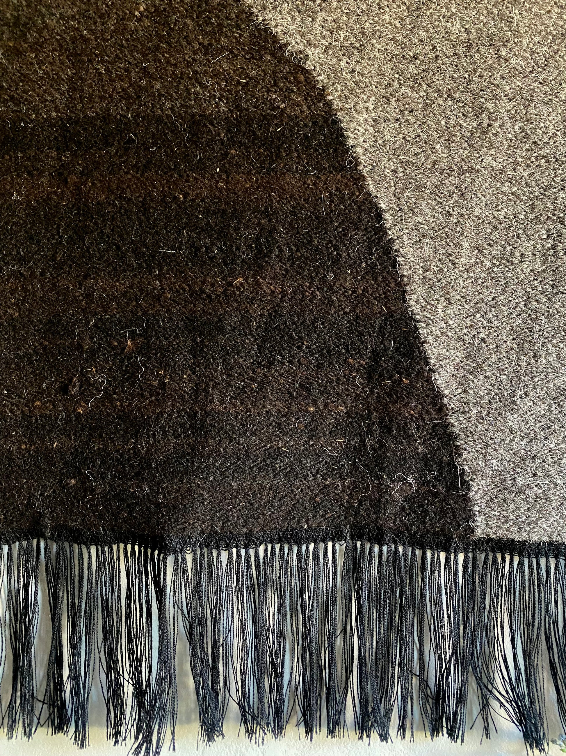 100% natural hand woven wall hanging, handspun British Black Welsh Mountain and Herdwick sheep wool on lambswool. The fleeces used are all processed in Scarlett's studio by hand, the raw fleeces are scoured, washed and carded and hand-spun on a traditional Ashford spinning wheel. The wall hangings are handwoven in Scarlett's studio in the Scottish Borders, at the Hugo Burge Foundation.